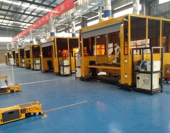 2018-06由科慧科技打造的該條畜牧設備柔性自動化生產線,運用24臺工業(yè)焊接機器人、12套工作站、2臺全自動激光切割機、2臺全自動沖弧口機、3臺自動切管機、4套智能AGV小車物流搬運系統、5臺自動彎管機、...